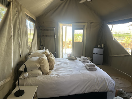 The accommodation consists of spacious, beautifully appointed glamping tents with modern en suite bathrooms. It isn't possible to park right next to the tents, and there are no trolleys so expect to make a few trips to get your luggage transferred. We managed ok, but some folk may find it quite hard work. There is a lovely outside common area with braai, outside pool and seating area with a quaint bar. We didn't make use of the communal kitchen because we were served a delicious evening meal on the stoep. We appreciated the hosts flexibility in changing our breakfast arrangements. The view onto the Orange River is really stunning from this resort as it is higher up the bank. There isn't direct access to the river, but that didn't bother us. It is worth bearing in mind that the common areas are integrated with the main household so, as guests, you will be interacting with the resident dogs, cats and child. The dogs settled down nicely after the initial excitement, but it was hard to find a quiet spot away from the toddler in the house who persistently wanted to make friends with everyone. I wasn't feeling well and tried to withdraw myself into a corner, but the young chap insisted on engaging. Realising that he's young, I took myself off to our tent assuming that I could count on privacy there, but even that wasn't to be as he followed me down to the accommodation - to the extent of hanging around outside my tent door. Eventually mom took him away. Later in the day, every time, the young chap passed me he would loudly announce to everyone that 'that auntie doesn't want to talk'. I felt so bad that I approached the dad and explained that I didn't engage because I wasn't feeling particularly well. When I gently pointed out that there was nowhere for me to escape to get privacy, he became unnecessarily defensive telling me that I should expect that a toddler doesn't understand and that the property is his home. That may be true, but it is not unreasonable for paying guests to be able to access some privacy. They should be able to choose if they want to engage or not and there is plenty of space on this property to make this possible. I was made to feel uncomfortable just because I wanted some space and this very much soured what would otherwise have been a really nice stay. It's a lovely spot, but sadly I wouldn't return here. Based on my interaction with the host I'm fully expecting to get a defensive response...