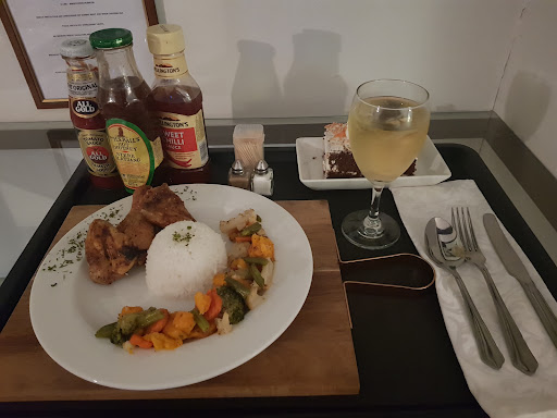 The gardens are well kept and although it was almost dark I managed to do a short stroll in the gardens to enjoy to lush greens. I have pre ordered dinner witch was served in the room just after 18h00 as requested. I got a glass of wine and a beer from the bar and was sorted. I was ready to turn in and looking forward to a good rest with a nice breakfast in the morning. There was some light shining through the curtains, so for those of us who like it pitch dark at night, it can do with some block out at the curtains. Breakfast was served on time and there were no complaints in this area either from my side. All in all a...