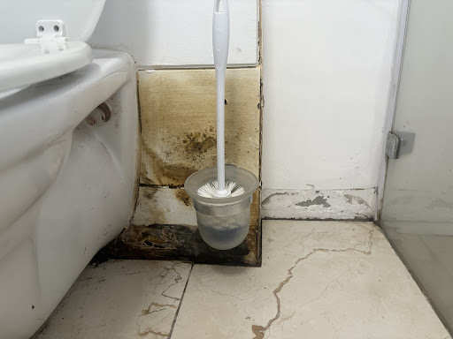 Downstairs shower walls had mold spots and the shower floor tile grouting discolored and looks dirty. We pointed out mold to housekeepers, who were able to at least rectify a bit of the wall mold issue. Bathroom basin and toilet need re-grouting too (mold)