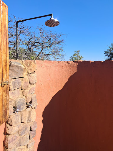If I could give this so called “guest farm” ZERO stars I would. My mom booked this trip away as a surprise for my dad because he loves being in the bush. Our family trip started out with my brother and I arriving at this horror stay by nearly ruining my suzuki as we were never informed that the road to the farm on the property was filled with soft sand and giants holes that easily give way under the pressure of tyres. We arrive at the main house to collect our keys and wait over 20 mins as no one is coming to the gate despite hooting and following instructions (trying to call the owners despite ZERO signal) We explain that my parents will be joining later and the booking is indeed for 5 people and Louis( the rude host) then proceeds to lead us up the side of the mountain in my suzuki that is barely equipped for a gravel road never mind a mountain hike. We arrive at a shifty looking “chalet” and my brother and myself both admit after that drive and the way the main house looks this is on the up. Sadly, we are confronted with a smelly fridge that has been stained yellow, doesn’t close and isn’t even on. A gas hob that looks as though it may explode. The view could barely detract from this. We walk into the room and the linen is an assault on the eyes. I can only assume that the sheets were once pink or had been dyed some sort of peach to hide stains. Louis hands us a black bag and inside are our towels. He says the solar battery is charged and we must drive down the mountain to charge the battery for the lights again. There were no glasses. There was a used old toilet roll a dirty mirror. Don’t get me started on the bathroom. Yes there is an outdoor shower, that was the one true thing in the “room features”. It’s outdoors and crusty and full of mould on the shower head but luckily they kindly left behind a crusty old piece of soap for us to freely use. When my parents arrived we sat in dismay for a while and read through a book left behind for us. Not only was there a personal hunting scrap book left for us but also racially charged newspaper clippings that Louis had saved over the years. This was enough to throw my father over the edge and he went to speak to the owner and this delusional old man told us “it’s been done this way for 17 years and we can store our meat in his house and charge our phones there” obviously we were shocked and so we mentioned the photos are nothing like what we got, so where are the photos from? To which the wife had lots of answers and was fumbling over her words. Louis told her to “shut up” and that if we have a problem we must take it up with the booking company. Bottom line, the photos were nothing like the place. The place was dirty, the host was rude and there was certainly an undertone of screw us. ZERO hospitality. I would recommend you DONT visit and that you DEFINITELY DONT visit if you are a person of colour after what we saw in that scrape book. What a DISGUSTING experience I have no idea where the other...