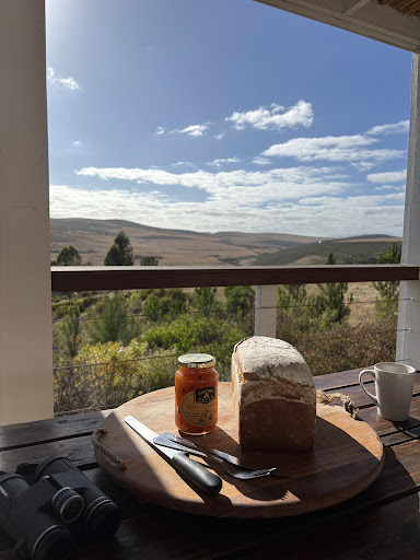 Read moreFour lovely self-catering cottages spread out and overlooking a dam and the surrounding farms and hills. Very spacious and as comfortable as a house, each cottage has high ceilings, beautiful polished wooden floors, a big open-plan kitchen, dining and lounge area with a huge fireplace, as well as a pizza oven. Two large bedrooms share a bathroom with shower, and the main bedroom has a glorious oval bath-for-two overlooking the deck and views. Very good, large and comfortable beds, pillows and linen. Good for all weather conditions, the deck is under cover with a braai, dining area, an excellent wood fired hot tub and two chairs for reading and relaxing. Outside good patch of lawn for children or sunbathing. Kitchen is well equipped with fridge, microwave and two-plate stove and generous hospitality with filter coffee and homemade rusks, as well as 2 pizza bases, and fresh farm produce that included 6 eggs and a slab of butter in the fridge plus the 'piece de resistance': fresh farm milk and loaf of bread delivered through a secret service hatch before breakfast. Lots of dry fire wood provided. Big enough for a long stay to...