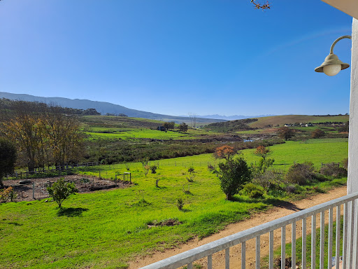 If you are after a peaceful holiday with views of rolling hills and beautiful mountains, sounds of blue cranes and other farm birds and animals, this is the place for you. Heilfontein has touched me and I fell in love! The attention to detail is flawless including the top of the range bed and pillows. A peaceful sleep is guaranteed! Not to mention all the extra’s in the fully contained kitchen. Carla, their beloved German Pointer, will happily join you on walks and lead the way. Lindsay and Glynis are wonderful hosts who offer warm and friendly advice about things to do in the region. Of the 9 wine farms in the area, our favourites were Boschrivier and Raka. The Boschrivier Cabernet 2017 is a must for your wine collection. Our next stop was Stone House Estate where we found delicious locally crafted Nguni Camembert, Pecorino and creamy cheddar. George at Mountain View Farm produces his own olive oil where you can purchase a 5 litre box on tap. I am left with the feeling of love, warmth and cozy comfort. Thank you Lindsay and Glynis, we will never stop telling everyone about our superb experience. With much love and appreciation. Renée...