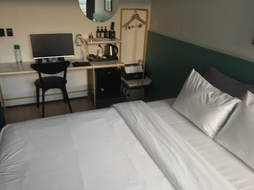 In the evening you can even use the pantry with sea view for making some ramion or having a coffee. Or bring your own soju and look at the storm passing from the warm/cold but dry comfort of the hotel. It's located on songdo beach, in the best area of Busan for seeing the sites. (Bus to gamcheon, city centre, or food quarter etc are all in walking distance. You even get a discount for the skyrail btw. The rooms are really good considering the price. Spacious clean to normal standards, air-conditioning, payperview tv(with basic Korean channels too) spacious bed, nice shower, fridge etc. We stayed in the standard with half view, wich was fine. So can't really say about the rooms below that, but above that should be even better. More space, better view etc.