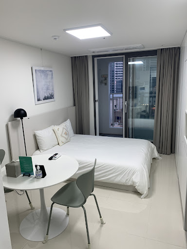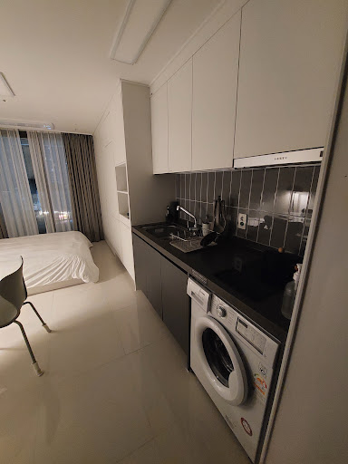 Read moreIl n’est pas du tout adapté à un long séjour. Bien que neuf dans un immeuble récent. Quelques points positifs : climatisation, tv avec YouTube, lit confortable. Cependant, Nous n’avions que 4 serviettes pour tout le séjour. Ce qui est juste même avec une machine à laver. Nous n’avons pas eu assez de papier toilette et de gel douche. Il était impossible de jeter nos déchets alimentaires! Un gardien au premier étage nous empêchait de jeter, bien que nos déchets étaient correctement triés selon les règles de l’établissement. On comprend qu’il faut des sacs spéciaux pour les jeter qui ne nous ont pas été fournis ni dans le logement ni dans la résidence. Les informations sur le tri ne sont pas correctement fournies nous avons du chercher sur internet les règles en corée. Le gardien était aussi désagréable avec nous « touristes occidentaux » que avec les autres locataires coréens. La rue est donc pleine de déchets. Après avoir envoyé un message à l’établissement, on me dit que je peux jeter mes déchets au premier étage et que le gardien a eu peur que nous jetions mal car nous sommes étrangers. On nous mène en bateau. On leurs dit donc que nous laisserons nos déchets triés dans l’appartement. Imaginez le nombre de sacs et l’odeur dans le logement à notre départ…. Nous avions une vue sur un mur et un balcon très sale. Il est indiqué qu’il est interdit de cuire de la viande et du poisson sur la plaque de cuisson… à quoi sert t’elle du coup?! Il n’y a bien sûr aucun condiment : sel, huile, poivre, juste deux cafés offerts. La vaisselle est extrêmement petite et il n’y a que deux mini assiettes. Il est interdit de fumer sur les balcons, les locataires fument donc dans la rue devant et jettent leurs mégots au sol! Le ménage est payant et le prix pas mentionné. Vous n’avez rien pour faire le ménage dans l’appartement (même pas un balai). En cherchant plus d’informations sur ces conditions que je trouve hallucinantes j’ai trouvé des commentaires qui dénonçaient les mêmes problèmes que le mien sur d’autres plateformes. Je vous invites donc à chercher avant de réserver. Malheureusement pour nous, nous n’avions pas...