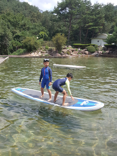 Read more정원이아주 멋져요 사장님도 인간적이네요 수영장 넓고 계곡물 끌어다 쓰는거라 깨끗해요 깊이는 약 1미터가량 화장실 개수대 모두 청결하네요 잔디로 된 넓은 놀이광장도 굿~ 화장실이 한쪽에만 있는데 이동통로가 모두 파쇄석이라 파쇄석 밟고가는 소리가 ...