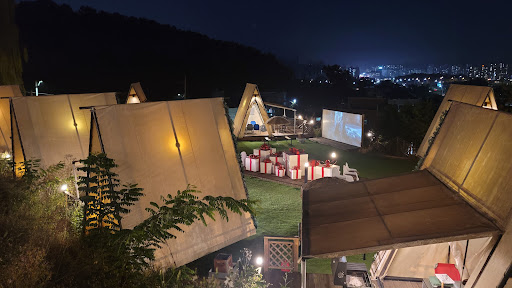 춥다고 그래서 담요 바리바리 싸들고 갔는데 안에 온풍기 너무 잘되서 한개정도만 담요 있어도 충분 할거 같구요 고기양도 아기포함 셋이 먹기 충분 했습니다 따로 외부 음식 반입이 안되니 참고하세요 그리고 카페에서 음료와 머핀도 줘서 엄청 배부르게 잘놀다왔어요! 안에만 있기 좀 심심할거 같아서 보드게임을 가져갔는데 카페에서 렌탈을 하는 시스템이 있으면 더 좋겠다고 생각했어요 (각자 놀만한거 챙겨가세요) 전 10시타임이였는데 재밋게 잘놀았어요 밤이 이쁘긴 할거 같은데 10시도 좋아요