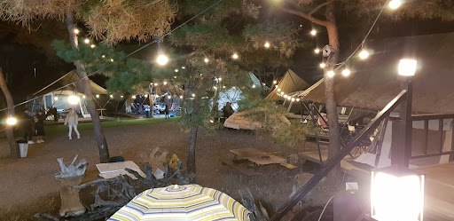 Tents are big and spacious on raised wooden decks with comfortable camping chairs and a table in front. Two double beds inside the tent which are quite comfortable. The tent has electricity, with a light inside and outside along with a fridge and a heater for cold nights and heading pads for sleeping. Comfortable even in November weather.