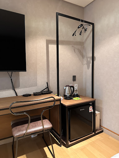 Read moreThe deluxe room ceiling seemed under construction. Washroom shower place needs to be updated. We arrived a few hours early on Tuesday, July 22nd around 1 pm and saw no one at the front desk, so, we waited in their waiting area infront of the reception.10 minutes past and still no one came and then when I went to the desk, the front desk girl was sitting there on her cellphone. She was hiding under the desk. I could not believe that she would not even greet a guest that just walked in. My wife and I were talking, so there was no way she would not have noticed. She said the room was ready but would charge 10000 won per hr. We politely said we'll go for lunch and come back.Then, in the evening and morning there was another girl who was very helpful and she was totally the opposite. Morning, free shuttle was great. We did not have free breakfast and snacks as it was just some plain bread and ready to eat noodles that you can buy at a convenience store. It's not really...