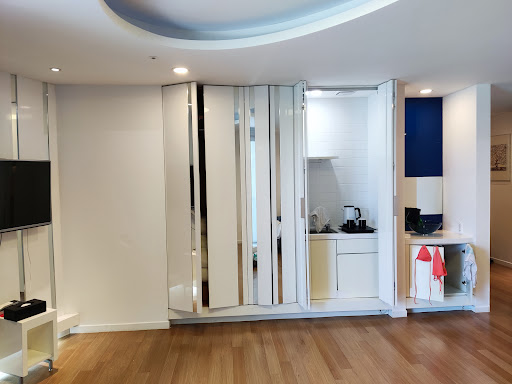 There are 2 different hotels within the same building. Room next to mine was totally a different hotel. Front desk is non existent you can say. It’s self check in, got there early and no one was at the front desk. Early check in is absolutely not possible, so don’t bother.