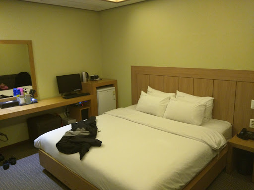 ย ย ย Read moreIt was definitely not expensive compared to the Seoul hotels. We booked 2 rooms and the differences were quite apparent. My room's biggest gripe were towels that had cigarette burn marks on them and an aircon that blasted on one of the beds. We had a queen and single bed so the single bed only had 1 pillow. Asking for a second pillow was subject to availability as they don't have any spares! Funnily enough for 2 adults, there was only 1 large bath towel so we had to go to the reception every night to ask for another large one. Small towels were plentiful though.||||The other room had it bad. Their aircon turned off automatically every 2 hours so their first night was sleepless, having to switch it back on every 2 hours or it'll get too stuffy. Thankfully it was resolved after we complained to the reception. Still don't know if it's an aircon setting by previous guests (which we can't rectify because all the instructions were in korean) or faulty aircon. ||||We engaged a driver so the location was not an issue. The street behind the hotel was a black pork street so plenty of choices to try the Jeju famous black pork. There were some nice quaint shopping streets behind the hotel as well. The hotel is just about 10 minutes car ride from the Jeju airport.||||While the reception was not the most engaging, he does try to address our issues politely and has a good command of English. Most important that we get understood in...