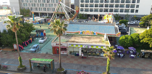 ย ย ย Read moreMy hubby and I stayed at this hotel for 6 nights(18/10/15 - 24/10/15) as a base for sight seeing jeju island via public transport and day tours.||||Plus points are: ||||1) Short walk to Info Booth to meet the yeha bus for our 2 day tours. Yeha bus driver even drop us off just opposite our hotel after the day's tour.||||2) Paid only W 5600 for taxi from airport to hotel.||||3) Short walk to Dongmun Rotary behind hotel to get buses to/from Bus Terminal (bus 100) for buses to Hallasan's Erimok and Yeongsil trails, to airport (bus 200) then to Jungmun/Seogwipo by Limousine 600 from airport.||||4) Chose to stay in the room 605 (on 6th floor, their highest) with a king bed as the windows faces the sea. Although we booked the more expensive twin bedded room, we decided not to take that as Mr Kang only offered us 2nd floor twin-bedded rooms facing afternoon sun and no views. We were still made to pay the more expensive twin room price although we decided to switch to the King bedded room.||||5) Restaurants nearby- behind hotel - BBQ Black pork street and dongmun traditional market, in front of hotel - seafood sushimi street, by the side of hotel seafood.||||6) Shopping -behind hotel are malls, underground shopping, dongmun market, on the same street there's E-mart, wholesale mart(Martro)||||7) Noise from Fairground in front of hotel can be cut off when the double glass and one wooden windows are closed.Noise stops at 10pm.||||8) Room- good size, clean, big tv sceen, good air cond and bathroom.||||9) Mineral water and can corn drink is provided free of charge.||||A pleasant hotel to stay with food, public tranport, shopping all within easy reach if you...