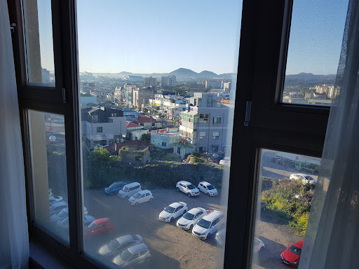 この夏休み、雨の関東を脱出して、中学生の娘と夫婦で、3泊しました。||||20年前、新婚時代に夫の転勤でソウルに住んでおり、済州島も訪れた事はありました。中文エリアの新羅ホテルや、(今はない)パラダイスに宿泊。||が、中文海水浴場は、石が多く、波が荒く、波にのまれグルグル回転(笑)していた記憶が。||お盆の土用波だったんでしょうか。||||できれば今回は、別のビーチに行ってみたいと思い、<泳げるビーチが目の前>&<外国人から評価の高い>高級ホテル、を探したところ。||。。。コレが意外に、見つからない。なんでだろう?||||ビーチ前にもたくさん宿泊施設はあるけど、外人からのほぼ投稿無しだったり、15分以上歩かなければならなかったり。車移動が前提だったり。||||検索しまくって、やっと条件にギリ合いそうなホテルが見つかったのが、ハムドク・ビーチ。。。中でも、一番高評価だったのが、コチラのホテルでした!(^^)!||||ビーチ目の前の4つ星ホテルで、外人旅行者から、眺めと立地で好意的なコメントを獲得。運命というべきか、予定の日程で3人部屋が1室空いており、即予約したのです。||||しかし、ハムドク・ビーチ自体、土地勘のまったくない、見ず知らずの場所。詳しい現地情報を全然入手できない上、ホテルの詳細もわからず、ひどいアレルギー体質の母娘としては、不安が募るばかり。。。||||「キチネットも食卓もベッドのそばだし、虫とか出て、ベッドがかゆかったら、どうしよう?」「掃除は、大陸的にいい加減じゃなく、きちんとやってくれてるかな?」「タクシーって拾える所なの?」等々あまりの心配で、出発前日に、熱を出して寝込んだくらいデス(^^;)。||||さて、その宿泊の結果。||―事前情報がまるで無かったのと、現地との習慣の違いで、戸惑う事は正直いって、少々ありました。お値段もリーズナブルな分、5つ星ホテルのようには、いきません。||||でも、夏休み旅行としては、お天気に恵まれたせいもあって、家族で楽しく海辺を満喫し、無事に帰国できたのです(⋈◍>◡<◍)。✧♡||||あんなに心配していたわりには、満足できた宿泊♪||真夏のピークシーズンに、ビーチフロントのホテルとしては、日本ではあり得ないお値段で、絶景の少し広めの角部屋に泊まれたんですから。||戸惑う点はあっても、時期と値段を考えると、<コスパの優等生ホテル>といっていい。||||加えて、わが家的に、一番評価したい点は、ベッドも寝具もまったくかゆくなく、虫も出なかったコト(^^)v||||日本のブランドホテルだって、ハワイやアメリカのチェーンホテルだって、ゆるい手抜き掃除をしている所は、わたしら母娘には、一発でワカルのです!||普通の人が感じない程度のダニでも、ベッドや布団に入って5分でチクッときて、夜もかゆくて眠れず、明け方なんかはベッドにいる事さえできないんですから。||(ベッドメイクは、カバーやシーツ替えを床に布団ひきずって行ったりするので、カーペットにダニが多いとすぐ寝具に移ってしまうから、部屋の掃除がきちんとされ、清潔に保たれていないと、ベッドや布団がかゆくなるのです。)||||<清潔で快適、毎日気持ちよく眠れた>=これは、アレルギー持ちのわが家にとって、最大の高評価ポイント(≧▽≦)||||リニューアルしたばかり?なのか、キチネットやシャワールームはとてもキレイでピカピカ、5つ星ホテルより新しかったくらいで、水量も文句なし。バスタブなくても、ノー・プロブレム。||||おススメするかと聞かれたら、おススメします。||ただし、韓国語が多少出来ることが必要で、英語がある程度でき、細かな点を5つ星ホテルと比較してはいけません。英語のできるスタッフもいるようですが、常駐ではないような。||||また、足回りの確保も必要。タクシーが常に近くにいるわけでは、ありません。||フロントは基本呼んでくれず、自分の責任で呼ぶことになります。||||また、ここの最大のウリは、ビーチビューの素晴らしさなので、お天気も、重要ポイントでしょう。天気が悪いと、魅力半減です。||||もし、宿泊を検討中という方は、以下にさらに詳しく、今回の体験、印象と感想を記しましたので、参考になさって頂ければ幸いです。||||1.立地と眺望、交通の便||||済州島の北西にあるハムドク・ビーチのちょうど中心で、海に面して建つ。||空港からは、車で3545分位。||夕方、夕食などで済州市中心部に出る場合は、中心部に近づくにつれ、道路が渋滞。(帰りは早いけど。)||世界自然遺産の<萬丈窟>まで車で15分位、<城山日出峰>に行くにも便利。逆に、中文リゾートは、島の反対側なので、行きづらい。||ロコが好きなビーチとしてよく名を挙げる、風力発電の風車が印象的で、こじんまりとした可愛い<金寧海水浴場>にも、車で10分位。||||基本、タクシーはホテル前にはいないので、流しを拾うか呼ぶか。||観光地だが、夏でもすぐつかまるとは限らず、空港の観光案内所でも、「流しのタクシーは、観光客にはおススメしません。