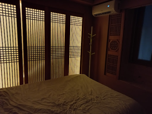 Pros: Air conditioner, modern light system, TV Cheap. I stayed there on a weekend, and it was only 50,000 won. Good breakfast - I didn't actually eat it, but I saw the buffet area, and it looked very nice Nice lobby - many plants and traditional decorations. The surrounding area is a fun place. You're right in the middle. Convenient parking. You have to call the hotel, thought, in order for them to open the gate. If you don't have a phone or can't communicate via phone, you might be able to leave your car on the side street for a minute, walk in and talk to the worker, and they can open it for you. Amenities! You don't need to bring a toothbrush, toothpaste, face wash, condoms (lol), etc.