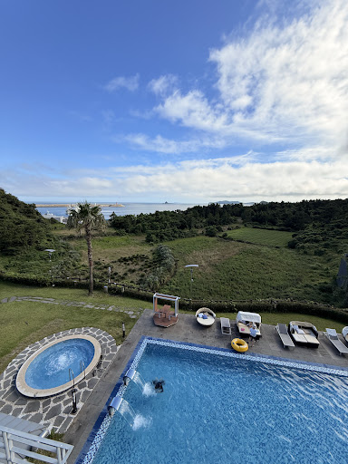 We booked the hotel about 2 weeks before we were to travel and it was the only one available as all other hotels were fully booked. So it was a bit of a splurge. ||||The resort is located on the southwest side of the island. About 40 minutes from the airport. It's a bit secluded from any other hotels. Could be a good or bad thing depending on how you see it. The hotel is beautiful and modern though. We booked the Jacuzzi Suite. I think it's the only 2 bedroom suite with an outdoor Jacuzzi. The living room was spacious and the view was breathtaking. I loved just sitting at the balcony enjoying the sea breeze at night. It had a kitchen so it was perfect as we sometimes needed to cook ourselves. The beds were really comfortable and each had very new huge Samsung LCD TVs. Great thing about Korean hotels is that most of the new ones have those electronic bidets. Breakfast was included and had a great mix of continental as well as Korean style buffet. They were delicious. The resort also has a convenience store, spa and other facilities that we didn't get to experience though.||||On to the minor hiccups. As there were 4 of us and it was a 2 bedroom suite, I had no idea why there were only 2 large towels provided. Maybe Koreans indeed don't use large towels. But of course this was easily solved with a call to housekeeping. The Jacuzzi we had was leaking to the point that water was seeping into the main bedroom. The swimming pool looked like it hasn't been cleaned in a while, though we didn't really cared as it was raining most days during our visit. They didn't have iron either so we made a makeshift iron using pans provided.||||In terms of services, the receptionists don't really speak English well. They had to call in one of their workers to speak to us about getting around the island. Luckily they can call for taxi for hire service from the hotel as we had no idea how to travel around and where to go. The staffs are friendly and helpful though. Getting to the nearest supermarket/restaurant would take about 5 minutes by taxi. You can also venture to the beach by walking on the Olle trail. The beach opposite the hotel is nothing to be excited about but if you walk further into the trail you would get to see a more beautiful beach.||||Overall, you'll love the hotel if you just want a place you can relax and enjoy the beautiful...