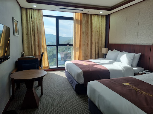 ย ย ย Read moreLarge, new 4 star hotel. Excellent value. Part of a chain in Korea. Easy access. Contemporary style. Bright, modern rooms with all necessary amenities plus bathrobes, free toothbrush, coffee and tea in the room . Very reasonably priced (special discount today :70 euros for a double room, without breakfast). Restaurant on the rooftop (not used). Cafรฉ in the lobby. A few eateries in the nearby tanji/appartement precinct (pizza,...