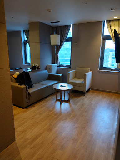 We enjoyed our room the most and felt that we had a good night's rest here. This is a semi budget friendly hotel that is close to the palace/park areas of Seoul. The room was clean and well appointed with two comfy beds, two good pillows per bed, a chair, cabinets and drawers to store stuff, a big tv, robes and sandals. The bathroom was nice too with good shower pressure and one of those shower valves where you can pick the temperature you want. The toilet flushed quietly and there was plenty of shower space. There are frosted windows in the bathroom which help let in natural day light but if your partner uses it at night you will see the lights come on.The location was decent but the metro was further than expected. When we booked trip.com showed us that it was 330m from Dongmyo Station but it was actually closest to jongno 5 entrance 2 which was a 10 minute walk away from the hotel. The palace and Hanbok areas are very close to the hotel and there are frequent busses in the area to take you to the major attractions and areas. Nearby the hotel there are many convenience stores but there are limited restaurant options outside of coffee shops.The breakfast at the hotel was ok. We found there was a good variety but if you went too early (7:30 am) nothing was out yet and if you went later (8:30) everything was limited. The hot items were not as hot as we liked them to be despite the heaters so it might be worth getting early and getting your food when it comes out so it is nice and hot. There were scrambled eggs, fried eggs, marbled cheese the one day, stuff to make salad, an onion soup, mushroom soup, fried rice, a hot vegetable (one day it was potato and the next it was mushrooms), hot dogs, cut up fruit, bread/toaster, cut up muffins, orange juice, coffee and tea. There was enough to get by and there are pricey a la carte options. The restaurant was a little drafty when we went but it was just enough to get us started each day.The staff at the hotel were friendly and allowed us to store our baggage when we arrived early so we could go out and explore the city. When we actually checked in it was smooth and quick. The elevators are a little tricky at the hotel and you have to pay attention to which elevator is closest to you and press that button. There are two elevators but there are two separate buttons to call them so it is worthwhile looking where the elevators are and choosing accordingly. The hotel also has a coin laundry facility and a meeting area. The lobby is also nicely appointed with furniture and a small drinks shop but being there in December we wouldn't want to hang...