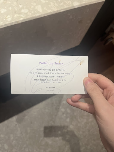 On the first day of check-in, we were given one free Coke and one sprite as welcome snacks. We checked in on July 29. This morning, I saw Coke, sprite, and Pringles on the housekeeping cart. Out of curiosity, I asked the reception whether Pringles was also a part of the welcome set. They said yes, and they talled me that they would send it to our room. I thanked them for the information.