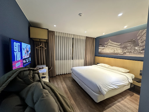 I recently had a pleasant stay at Travelodge Myeongdong City Hall during my visit to Seoul. Overall, the hotel provided comfortable accommodations and convenient amenities. However, there are a few areas that could be improved upon for an even better experience.The check-in and check-out process was smooth and efficient, with the reception staff being friendly and proficient in English. It was refreshing to have a hassle-free experience upon arrival and departure.One of the highlights of the hotel was the presence of water dispensers on each floor. This feature made it easy to refill my water bottle without having to constantly purchase bottled water.The shower heater in the room worked well, quickly heating up the water and providing a satisfying high-pressure shower experience. It was a small but appreciated detail that added to the comfort of my stay.Another positive aspect was the availability of Netflix in the room. This entertainment option allowed me to relax and unwind with my favorite shows during my downtime.However, there were a few areas that could be improved upon. The hotel only had one washing machine and dryer available, which sometimes made it challenging to find an open slot. It would be beneficial if the management considered adding more machines to accommodate the laundry needs of guests.Additionally, while there were two nearby 7-Elevens and a Kyochon, I found the surrounding restaurants to be quite pricey. It would be fantastic if there were more affordable dining options available in the vicinity. This would enhance the overall experience for guests who prefer more budget-friendly dining choices.Lastly, during my stay, there was some ongoing construction nearby. Although it didn't significantly impact my overall experience, it's worth noting for those who prioritize a quiet atmosphere. Nonetheless, I believe this was a temporary situation that is likely to be resolved in the near future.In conclusion, Travelodge Myeongdong City Hall provided a pleasant stay with comfortable accommodations, friendly staff, and convenient amenities. However, improvements in terms of laundry facilities and the availability of affordable dining options would make me more likely to choose this hotel again in the future. I hope the management takes these suggestions into consideration for an even better...
