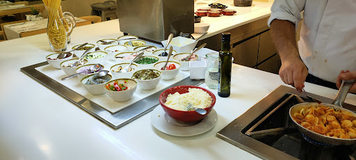 We had the half-board option and loved it. The breakfast buffet is amazing. It had a customized omelette station, customized fruit juice station, different types of milk (soja, almond, rice etc.), a donut wall, crepes, fruits, delicious pastries etc etc etc. The dinner was Incredible as well. It has a plancha station where they make fish or meat on request. There's also a salad bar, de cheese bar, salami bar, an italian corner (which was absolutely delicious ! You guys are very talented cooks, this was definitely our favourite station). The menus are different every day and there is a looooot of choice.
