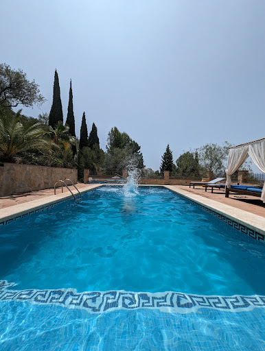 Well, where do I start?||Probably with Kris & René who were the perfect hosts from pre-booking stages to departure, it was a pleasure experiencing your sincere hospitality.||We unfortunately stayed for just 2 nights in the Superior Room "Higo" with our own beautiful fig tree on our private terrace with some spectacular far reaching views, so wish we had had more time .||We were delighted that breakfast was served outside on the terrace of the main house with yet more fabulous view over the valley, what more could you ask for.||As the weather was beautiful and being tired from spending the last 4 days sightseeing in Granada, Cordoba and the surrounding area, we spent our only full day around the village and the lovely pool on the most comfortable Daybed ever, bliss.||If you want to escape the touristy mayhem you should definitely book, you will certainly not be disappointed and the sea and many other places of interest and natural beauty,like Alhama de Granada, are all within less than an hour's drive.||We will hopefully be back in the not too distant future for a long...