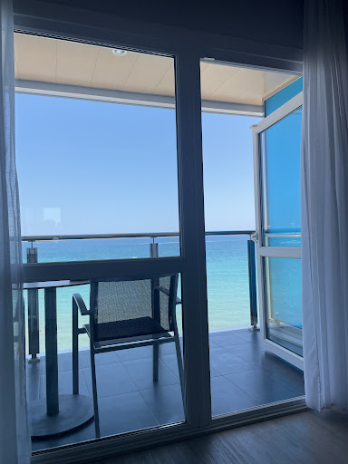 The first thing I noticed about this hotel was the amazing smell in reception - smelt so nice, like a spa. Checked in at around 1130am on Sunday 16th June and understandably the room wasn’t ready. Was asked for a phone number and told someone would call us when the room was ready (at around 2pm). We left our luggage with the concierge and went to find some food. After a while we went back to check if the room was ready and was told it was (although no one phoned us). We got to our room on the second floor (we’d paid for a premium sea-view room) and it was directly overlooking The Level swimming pool. The balcony was tiny and it could hardly be called a sea view. It felt quite claustrophobic and if we’d have sat on the balcony, the people at the pool would have seen directly into our room. We phoned down to reception and Christina said that they could move us, but it would be another 2 hour wait. We asked to see the new room first but we were told we couldn’t. We took the risk and accepted the new room. When we got down to reception, Christina spoke to housekeeping and told us that actually the room would be ready in 20 minutes - a welcome surprise. Christina was very helpful at sorting our new room out and we were very grateful. When we got to the new room, on the 4th floor, it was so much better. The balcony was twice the size of the first room and was directly looking over the sea, with the beach to the left. The first room was not what I could call premium, so we were so pleased we asked to move. The room even had English plugs and USB ports so no plug adapter was needed. It was light and airy and the bathroom was spacious and clean. Showergel / shampoo was provided if you wished to use them.