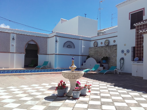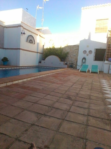 Read moreBij aankomst bleek de B&B, met neergelaten zonweringen, ook nog eens afgesloten te zijn. Na enkele onverstaanbare telefonische doorverwijzingen hoorde we een man zeggen "I am there in five minutes". Na vijf minuten verscheen een dame die ons geen hand, geen groet en nauwelijks een blik waardig gunde en opende de deur voor ons. Ze sprak geen Engels en stapte kordaat over de begane grond, "aqui desayuno!" "ocho hora!" ... wonderlijk genoeg ging ze door haar knieën bij het Zwembad om een onverstaanbare opmerking te maken nadat ze haar hand uit het water haalde en vooruit marcherend de grote sfeerloze patio verliet, richting de kamer op de eerste verdieping. Tijdens deze tocht werd nog duidelijker dat wij echt de enige gasten waren. Niet dat de dame zich in die voor ons ongezellige ervaring kon verplaatsen, door haar beste beentje voor te zetten en ons bijvoorbeeld een heel erg leuke kamer aan te bieden. Nee, we kregen gewoon kamer 6 met het raam op navelhoogte, waarvan ze attent het buitenrolgordijn omhoog deed. (De kamer was overigens niet op de website terug te vinden.) Daar zaten we dan, helemaal alleen. We zijn naar buiten gegaan, op zoek naar een restaurant. In het dorp bleek dat de drie restaurants, op dinsdagavond om 1930uur, allemaal dicht waren en bleven. Dus hebben we een stuk kaas en wat bier gekocht bij de supermarkt aan de overkant. Terug, in de eetzaal, zat alles achter slot en grendel, dus we konden geen glas of mes lenen om ons “diner” mee op te eten. De stinkende lege ijskast stond gelukkig wel tot onze beschikking. Eenmaal in de patio, hebben we onze maaltijd genuttigd onder een groene en blauwe gloed van de sfeerverlichting die automatisch aanging. In de patio is nul wifi. Binnen in het gebouw konden wij geen enkel historisch spoor terug vinden van de molen, waarmee de B&B adverteert. Uiteindelijk terug op kamer 6, wilden we de gordijnen dicht doen. De gordijnrails voor het enige lage raam zat op borsthoogte, maar er hing een gordijn voor die minstens twee meter lang was en die bleken kunstig opgevouwen te zijn geweest. We kunnen daarom wel zeggen dat we hard gelachen hebben in deze treurnis! Dan maar douchen, het was geen verrassing meer dat die helemaal koud bleef. Uiteindelijk in slaap gevallen in de benauwde kamer met tikkende propeller en blaffende straathonden. De volgende ochtend stond er op de afgesproken tijd een eenvoudig ontbijt voor ons klaar. Toen ik graag naast zout ook peper wilde en de twee Spaanse dames hiernaar vroeg begrepen ze totaal niet wat mijn wens was. Naar een zoutvaatje in mijn hand wijzende, vroeg ik: “zout & … “. Echter suggereerde de dames “ …& honing” en “…. & melk “. Op het moment dat wij het verblijf boekten, was de score op booking.com een 8,5. Werkelijk...
