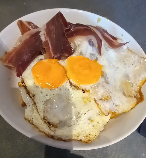 The rooms have been modernised but a bit shabby in places. There is a beautiful sweeping staircase in the reception area. The a/c was very quiet. The shower cubicle could do with being regrouted- it was a bit messy with gaps- I'm sure it leaked to the room below. The staff were very friendly. As the car park was very full we booked a table for a meal in the restaurant in the evening as were too late for lunch. There was no need as we were the only diners, barring one other man that came in much later!!!!! My husband ordered the pork cheek and was served 2 enormous pieces of meat but there was nothing else on the plate other than the meat and sauce. Not even a token garnish pepper or tomato. I ordered lamb chops and was served with meat and at least 5 small jacket potatoes, cut in half. How very weird to serve a woman all that potato and nothing for my husband. Of course I shared mine with him and they were very tasty. I've lived in Spain long enough to know that the Spanish are not great when it comes to serving vegetables but the above was very odd indeed. Quiet location but in the middle of an industrial estate so nothing of interest...