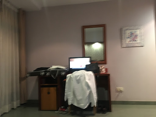 Mi habitación: diminuta. Literalmente de 2,5 x 2 m. "Armario" sin puertas (por no decir que era un barra con 5 perchas colocada entre dos paredes). Un baño muy justito con un plato de ducha de 80x80 y toallas que te hacen un peeling cada vez que te secas de los tiros pegaos que tienen. Paredes con un papel de flores del año de María Antonieta, mobiliario (escritorio, silla y espejo) roto y desgastado, marcos y zócalos bufados, no hay papelera y la TV es de 15". Lo bueno: el aire acondicionado, la presión de agua de la ducha.