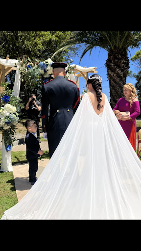 The ceremony took place outdoors, surrounded by lush greenery and overlooking the ocean. The setting was magical and romantic, serene, and unforgettable. The floral arch, blue and white arrangements, and warm sunlight created a perfect atmosphere for the couple’s special vows.