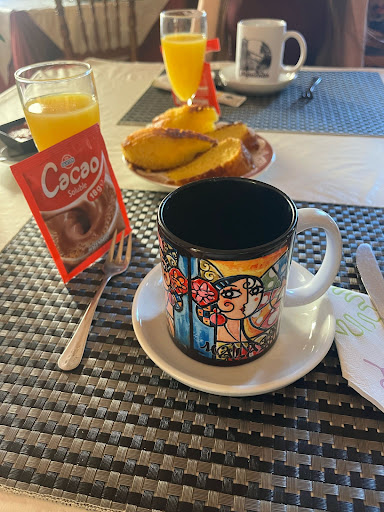 Después recalcar que efectivamente, sí, el pueblo no tiene nada, entendiendo por nada, a ningún otro establecimiento de hostelería (bar etc) así como servicios o cosas reseñables que visitar, por lo que si quieres cenar allí, si o sí tienes que hacerlo en el establecimiento (nosotros no optamos por esta opción, por lo que no podemos opinar en este sentido), y no dan comidas. Respecto al desayuno, conforme completamente, te dan opción a café, colacao, infusión, así como además servirte zumo natural, un bizcocho casero, y tostadas con embutido (jamón, queso...) con aceite, tomate, mermelada etc; creo que cumple sobradamente, y estaba riquísimo.