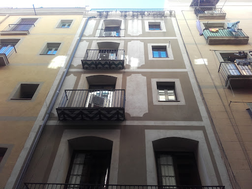 the front of the building is like an old shop or disused garage, nothing what you would expect and just a simple small wall plate to say that you have the right place. we arrived early and was hoping to drop our suitcases but could not gain entry through the steel bar security gate and door. the door bell was working but no one answered, we tries the 3 phone numbers we had but all just went into voice mail, in Spanish !. after 20 minutes one of the guests that were staying there came out and told us that there is never anybody there, he had been there for 3 days and not seen anybody !!!!. ho told us to go and see one of the cleaners downstair and let us in, we found and talked (as best we could our spanish is not so good) and she allowed us to leave our bags in an office, the sign on the office said it was open from 9am to 4pm, but of course nobody was there.||when we came back 2 hours later to check in, the same problem, we could not get in. we tried all the numbers again to no avail, we just had to wait for somebody else to leave, thankfully we only had to wait 10 minutes, but this is a worrying time knowing our bags were in the building. finally we found another person, we think a builder that was working on site and he called somebody and gave us a key for the room. that was it !||when we left the next day we saw nobody other that other guests talking about the total lack of any service.||the room itself was good and clean, the beds were very basic but ok. the room at the front was very noisy until 3am due to a bar being close and people drinking outside.||we would recommend this hotel/apartments to anybody due to the total lack of service to which is a miracle to me that it runs at all. there is simply...
