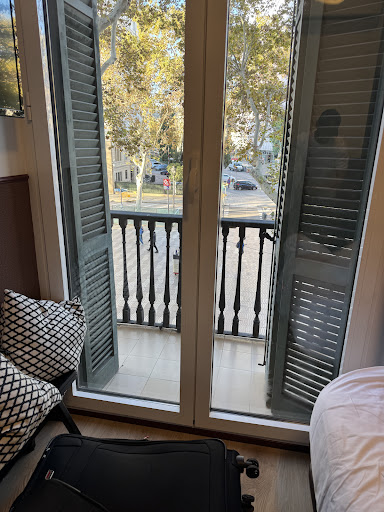 Read moreThis is just a 1* hotel and I can only assume that is because the reception isn't manned 24/7. Had services far better than some 3/4* hotels I've stayed in! ||||Greeted by receptionist on arrival who was very personable and genuinely helpful. ||||Room was great! Quite small but has a double bed, one bedside table, clothes rail and shelves. Has iron and ironing facilities, tea and coffee facilities.||En suite was small but had everything one needs including toiletries and a double shower. Only downside was no shelf in the shower but not a biggie!||||Major plus was a small balcony overlooking La Rambla, with two wooden chairs. Door is surprisingly soundproof so not disturbed much overnight.||||Other services outside the room included a kitchen and an indoor terrace with space to socialise and a book sharing shelf - I saw books in at least three languages 😊||This place was an amazing find! Right in the middle of the action, at the bottom of La Rambla, a stones throw from the marina, and right next to the Wax Museum.||||Notes: only accessible via marble staircase, and is on second floor - no good for...
