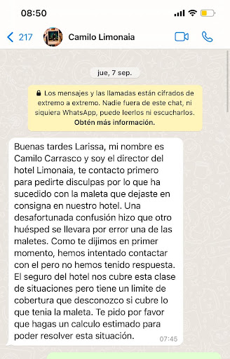 Last August 28th we stayed in Limonaia. Upon arrival we were told that the hot water was not working. When we asked them to store our luggage for us while we returned to Barcelona, they told us that they were going to store it in a space where guests did not have access. However, days later, Camilo, the hotel manager, wrote to us to inform us that a "guest" had stolen one of our suitcases with personal belongings worth around 2,000 dollars. They told us that the hotel had insurance for these cases but that we would have to present the invoices for the belongings that were in the suitcase. So we did it and today, 6 months later, we still have no response from Camilo, the hotel manager, who has stopped answering our messages for weeks.