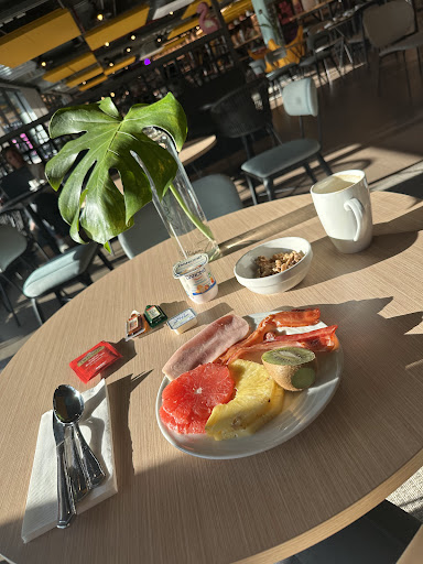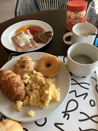 Breakfast was 21€ per person, a selection of pastries/fruit/eggs from a bag/deli meats. Fine, not worth the price. (Which the staff also said to us upon check in, lol)