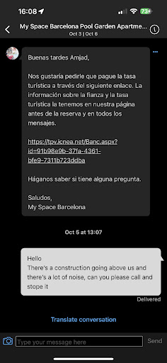 Read more*THEY ARE A SCAMMERS * THEY ASKED US FOR 400€ AS A DEPOSIT AND THEY NEVER GAVE IT BACK BY CLAIMING THAT WE MADE NOISE AT THE APARTMENT / ALSO ASKED 60€ LATE CHECK IN AND MORE TAXES BUT IN BOOKING TIME THEY SAID IN THE PRICE ALL INCLUDED I went with a friend for 3 days working in Barcelona and we spent the whole time outside working and we used to came back later at the night to sleep, so the second day we couldn’t sleep because there was a construction happening in the same building so I sent a message by booking telling them about the construction and the noise but they didn’t answer me, so I said it’s ok one more day and we are leaving but like after all they scammed us and even after I tried to call them they said send an email to the owner but he/she...
