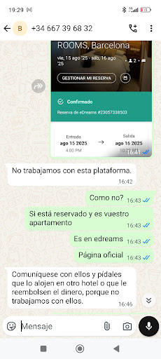 Como consecuencia, en pleno 15 de agosto en Barcelona, nos quedamos sin alojamiento, con precios desorbitados y sin ningĂşn tipo de asistencia por parte del establecimiento.