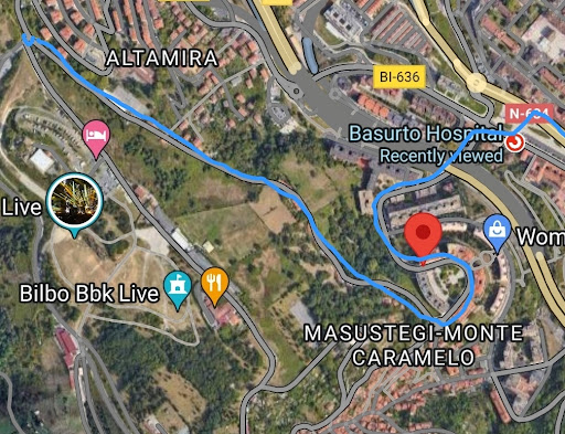 Anyways, finally I got to stay here & it was worth it for the view :) I did see an unfortunate motorhomer coming up the dreaded wrong road (with a sign that says no motorhomes) see Google map insert pic & avoid it, marked in blue. Google maps did not send me up this road.....thankfully. What amazed me was not the steep narrow road, but the fact the apartment blocks adjacent to it have near vertical footpaths to access them!! Anyway the 58 bus (& Bilbao buses) has a very good access system with a ramp that comes out even accomodating the steep uneven bus stop roads. The bus itself will accomodate a wheelchair or small mobility scooter up to approx 120 cm long, otherwise you wont fit in the bus accomodation space.