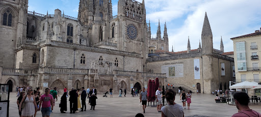 I must first say that the man on the day shift is THE most friendly, lovely, helpful guy, but if you don't speak a lick of Spanish you might have trouble. He was the best part about this hotel actually.||I have never met a more puzzling way to get into a hotel as this. The entrance is via a call buzzer like you find at apartments, situated outside a door marked '2', which is around the corner from the entrance to the restaurant/pub. You will see a small sign on the buzzer box that says 'campus tavern' - that's the one you want. If someone is at reception you will be able to get in, but if not you are out of luck! The hotel has no frontage as such. You need to go to the first floor of the building once being buzzed in and find the little door marked 'hotel' to find the reception. I only managed to get in because other puzzled travellers arrived at the same time, and they somehow managed to find the man at reception to let us into the hotel.||Once you finally check in, you will be given a set of keys for the various entrance doors so you can get in and out again. Parking is available in the basement at 5 euros per night, but the street is very safe so I just parked out on the street with no problems, and saved myself the money.||The room I had was very basic, with no airconditioning (in Spain, in summer!) - the windows open, but I wasn't sure how safe that was so I kept the main shutter nearly down. There are a couple of powerpoints for charging things, a TV and a desk, and rudimentary toiletries in the bathroom (and a hair dryer). A place to sleep and that's all. The corridors were very noisy, so you can hear everyone coming and going from their rooms.||Location of the hotel: it's in a really lovely quiet area, just around the corner from the Monastery de la Huego, and across the road from a lovely big park. The pub downstairs serves food and drinks, and you can get a breakfast snack there from 9am. The historic downtown area of Burgos is about 30 mins walk along a really beautiful river path filled with sculptures, greenery and wonderful views of the river and bridges - the receptionist will give you a map and detailed instructions on how to get into town.||If you can get into the hotel, then it's a nice little place to spend a...