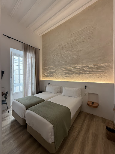 Read moreWe arrived to Cadiz by train and it took a 15 minute walk to get to the hotel but it was a flat route . It is a nice hotel, though we found it difficult to access when we first arrived|as the intercom wasn’t working . Eventually we were able to get in and leave our luggage in lockers until we could check in. We went out and did a walking tour and had a lovely lunch.|We came back, and got the key code for our room. It was very clean,though tight. Nice decor and good shower and loo. It was perfect for us as it was just a bed for the night but we struggled with our large suitcase. There is no breakfast but the reception recommended some local cafes and restaurants- we went toCasa Manteca in the evening which was really good.|The room suited us but you need a bigger one if you...