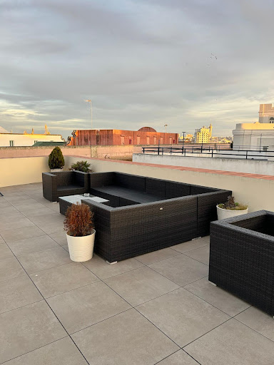 Beautiful building in a great area . Apartments were spotless modern comfy beds and pillows. Reception is 9-2pm but if arriving outside that time as we did 10pm at night correspondence from reception spot on and everything simple to follow re getting in main doors then to apartment. In lobby area fridge with water coke Fanta juice boxes , complementary help yourself as often as you wish plus coffee / tea Machine and biscuits |If you need extra towels just ask at reception during 9-2pm not a problem |Roof terrace fabulous, lots of beds and sofas and when you get too hot an outdoor shower alas not the weather when we visited.|Now to the not so good , which has nothing to do with the apartments . Behind the building in a lane is a Shot Bar open 9pm to 4am everyday and very popular with the 19-22 year olds so extremely noisy and you can hear them . We were top floor , front and they were sooo loud . So I’d invest in noice cancelling ear buds to sleep as all we had was cotton wool and not great . But as long as you have those earbuds it’s a fabulous place to stay |For breakfast everyday we walked to plaza de mina to sit outside with the red umbrellas. This square also has the most amazing restaurant called Cumbres Mayores a definite must . Will review that separately. |For breakfast 2 coffees 2 fresh orange juice and toast and jam £8 ! At night there are tables at the other side of square for a bar a huge beer and extra large sangria and a bowl of nuts...