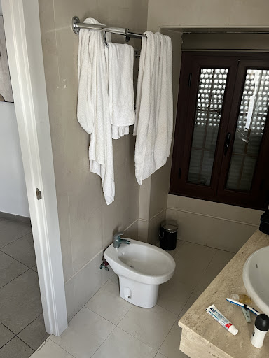 Further to this there were some additional minor issues, such as the fact that all street noises could be easily heard in the bedroom even after closing the windows late at night to try and sleep. The towel rail was positioned directly above the bidet. The glass shelf in the shower was placed at eye level in a quite dangerous position instead of in a corner of the shower that was out of the way. The provided table was so tiny as to be completely useless, barely wider than my open hand.