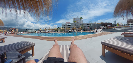 Mentioning the pool, i was bemused, crestfallen and really pissed off to find that one of the main reasons i had booked the hotel was seemingly no longer applicable. That was the promised DJ around the pool, which is still advertised on their website. All around the pool and outside areas were speakers dotted around all set up for some tunes to make chilling there enjoyable, but no DJ. No music at all in fact. No entertainment whatsoever. I have been completely misled by this and will be complaining to my package holiday provider. Complete false advertising- so beware.