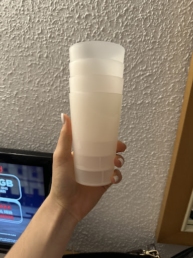 You are issued all inclusive cups on arrival that you must carry with you at all times amd there is a charge for loosing them (Fortunately we did not) I think this is mainly to cut down on cup collectiom around the pools and save on single use plastics. Glassware is offered at all meals and evening entertainment though.