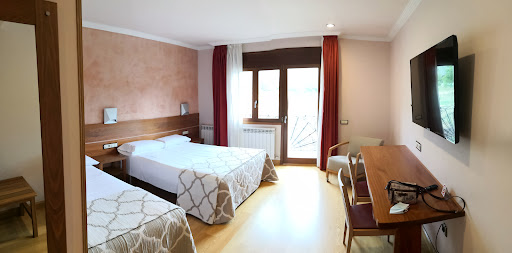 Stayed here for 3nights while exploring the area.|The hotel is welcoming with friendly staff albeit only one person spoke any English. Not a problem gave me a chance to practice my Spanish. |The room is pretty basic ,but had everything you need. It smelled a bit musty when we arrived, but this went when we opened the windows.|No air conditioning in the rooms, so relied on keeping the heat out by keeping the shutters down and windows open. |The hotel has a lounge and breakfast room but no bar. |The underground car park was great for our motorcycles as it was quite big. |Wi-Fi was free but was a bit slow.|Breakfast was a bit basic, coffee, toast and sweat bread/cake.|There were a few places to eat locally and the food was adequate. Ensure you check which bar Is open and selling food as it can be hit and miss.|There is a patisserie shop locally that does serve breakfast and has more of a selection.|There isn't much to do in and around the hotel unless it is rafting / canoing etc.|Again a great little stop for us as we were out all day on our bikes exploring.|We would...