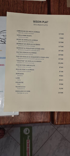 De los peores sitios calidad precio en que he comido. Contras: El servicio, lento. Las patatas quemadas y llenas de aceite, además no están calientes y parecen de anoche. Los calamares parecen de plástico. Los macarrones boloñesa, blandísimos, poco elaborados y con atún en lugar de carne. La escudella (sopa), sabe mal, y parece de sobre de Gallina Blanca, a parte de venir fría. El pan, penoso, parece de esos de bolsa, tipo payés pero blando como el de molde. Los segundos no pueden arreglar la situación.la ternera con setas, dura, seca, como si fuera envasada, con un color marrón envejecido y una salsa salada. Además, venía con regalo, un pelo de cocinero. Las manos de cerdo, en fin, pasables, sin más. Pros: las vistas del pueblo, la predisposición a servirte otro plato cuando no te gusta uno, y el ofrecimiento que hacen de ponerte las sobras en un tupper (ofrecimiento que rechazamos). Los postres caseros no están mal (flan, crema catalana). No...