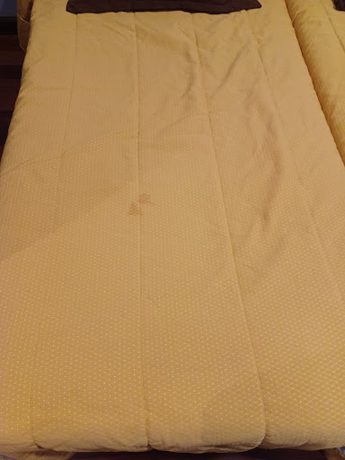 Read moreAfter a long drive we fould this hotel with plenty of free parking just off the main road. Our room was at the back which was large but quaint. The Religious artefacts in the foyer are a bit off-putting as there was no one there who looked like a pilgrim when we stayed.||The restaurant is in the basement so we had the set meal which was regional cooking and very good. The breakfast buffet was in the bar beside reception and was the poorest breakfast we encountered in Spain. I like my coffee in a cup or mug, not in a glass. There was no tea on offer only a glass of coffee or Passion...