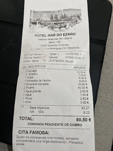 Two years ago, when visiting Fisterra, we drove around the bay to Ezaro, checked out the waterfalls and then found ourselves sitting at a table, outside the Mar do Ezaro Boutique Hotel, overlooking the bay, and ordered lunch. It was one of those magical moments you long to repeat, so it was no coincidence that on our return to Galicia, we reserved a room at this gem of an hotel, and headed straight for Ezaro. We are not disappointed. Great rooms, very comfortably appointed with all the facilities you would need. OK, it is street side, but that is a small price to pay. Service is as good as you will find, breakfasts to your order and dinner from a selective menu is very good. This Is indeed a boutique hotel, with plans to add additional rooms in the near future. I don't think the charm of the place will change, and I am sure that Miguel, the owner, is fully aware of the need for him to continue to provide services to the local trade as well as visitors as efficiently as he is able to now, in an enlarged environment. We will certainly return. Just a note. Our 2 visits to the Galician coast have purposefully been in September. The high season is over, and while some establishments may not be open, but those that do, offer quality services and excellent cuisine. I can't think of a better combination: no hoards of crowds yet still an excellent array of restaurants and, of course, Hotel Boutique Mar...