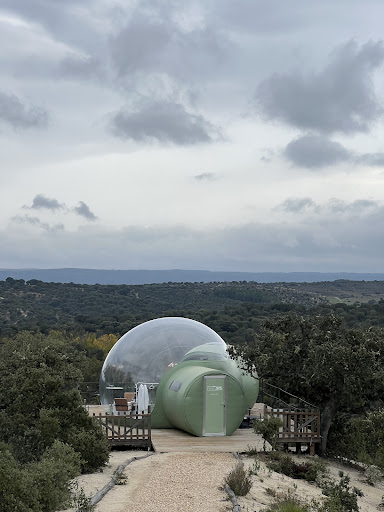 Nos hemos alojado en la burbuja y la experiencia como tal merece la pena, el entorno en el que está ubicada es precioso y el jacuzzi también suma a que sea más especial. Ahora bien, deberían cuidar los detalles teniendo en cuenta que no es una experiencia precisamente barata. Partiendo de que el check-in es a las 17h e intentas llegar a esa hora para poder aprovechar la tarde, no te avisan de que realmente hay que llegar una hora antes porque el camino hasta el lodge hay que hacerlo a 10km/h si no quieres que le pase nada a tu coche, a no ser que vayas con un todoterreno. No hay ningún tipo de señalización para llegar ni para salir, y teniendo en cuenta que no hay cobertura, ni siquiera te dan un plano para no perderte entre todos los caminos que hay. La cena de 60€ no tiene ese precio realmente, uno de los primeros que pedimos fueron croquetas, y te ponen tan sólo 2. Los segundos estaban buenos, pero de postre, pedimos helado y mousse de limón, y no sólo no nos trajeron la mousse de limón, sino que nos trajeron 2 polos de HACENDADO. Ni siquiera lo disimulan presentándotelo de otra manera teniendo en cuenta el precio que estás pagando. No contratéis la cena, 0 relación calidad-precio. El desayuno que sí que viene incluido sí que es muy completo, una pena que la cena no sea igual teniendo en cuenta que es lo que se paga aparte. Tanto para la cena como para el desayuno se retrasaron, teníamos que llamar para reclamarlo todo porque tampoco nos avisaban de que se iban a retrasar y nos tenían esperando desde la hora a la que habíamos quedado con ellos. No nos explicaron si había que ir a por la cena, si nos la traían ellos, si para hacer el check-out teníamos que ir al mismo sitio donde habíamos hecho el check-in... había que estar constantemente llamando porque las cosas básicas no te las explican. Escribí por WhatsApp preguntando si el agua del grifo era potable, y me dejaron en visto. En conclusión, es una pena que detalles tan simples como esos, no los cuiden nada teniendo en cuenta que sólo hay 1 burbuja en todo el recinto, y que en absoluto den el servicio que el precio merece. Aunque la experiencia sea maravillosa, detalles así hacen que vuelvas un poco decepcionado con el trato recibido.