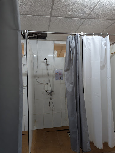 Negative: The showers have no temperature control or consistancy and are very dated. / The toilets are old too and poorly constructed with doors hitting toilets. / The washing sinks aren't great either to be honest and not served as well as they could be, like racks, soaps, basins, etc. / I am advised that there are washing machines in the ladies toilets but not the mens... just a bit sexist perhaps.