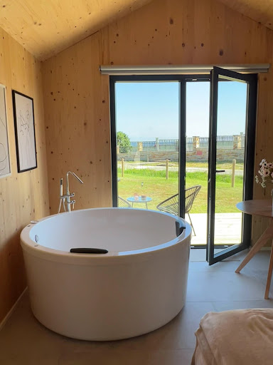 Desde el momento en el que entras, ya te das cuenta de que han pensado en todo, pues han cuidado muchísimo los detalles, y se nota que han invertido mucho tiempo y cariño en estas cabañitas. Todo estuvo genial: la preciosa decoración, el entorno súper agradable (frente a una playa, y rodeados de campo), la habitación inmejorable, el enorme jacuzzi, las vistas exteriores, la paz que se respira,... desconexión total.